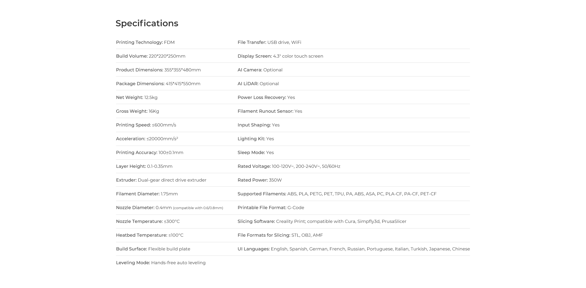 New ceramic heater, encircling the entire hotend. It heats to 200℃ in 40s and melts the filament instantly. Dual-gear direct extruder, delivering 50N strong extrusion force. Hotend with a titanium alloy heatbreak and a copper alloy nozzle, working with flying colors in up to 300℃.