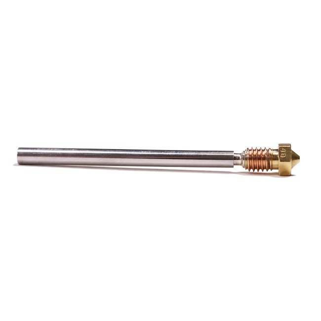 The 1730 Full Metal Hotend Nozzle Unit (FNU) forms the heart of the 1730 Full Metal Hotend and makes your 3D-Printing life so much easier. The Filament Nozzle Unit is made of high quality stainless steel with a brass nozzle tip. It is a single piece design which finally made a big annoyance a thing of the past: leakages. The FNU has an optimal thermal handling, reduces friction and has a all-integrated heat break.