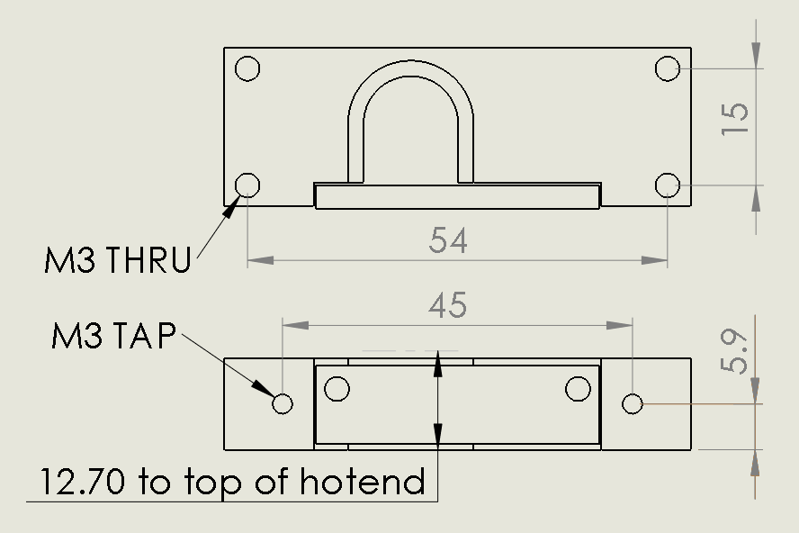 3D printer extruder retrofit kit for E3D v6 hotend (1.75mm). This allows the use of the Flexion Extruder with the excellent E3D hotends – enabling precision extrusion of virtually every available filament from Nylon to ultra-flexible Shore 50A. This uses the same mounting hole pattern as the E3D extruder, and also has a couple mounting holes in the front (see drawing). It includes a PTFE tube cut to length for the E3D v6 hotends. So you’ll have all the same advantages of precision, supported, reliable filament driving with the flexibility to print at much higher temperatures. This kit is appropriate for RepRap and Lulzbot printers by following instructions here.