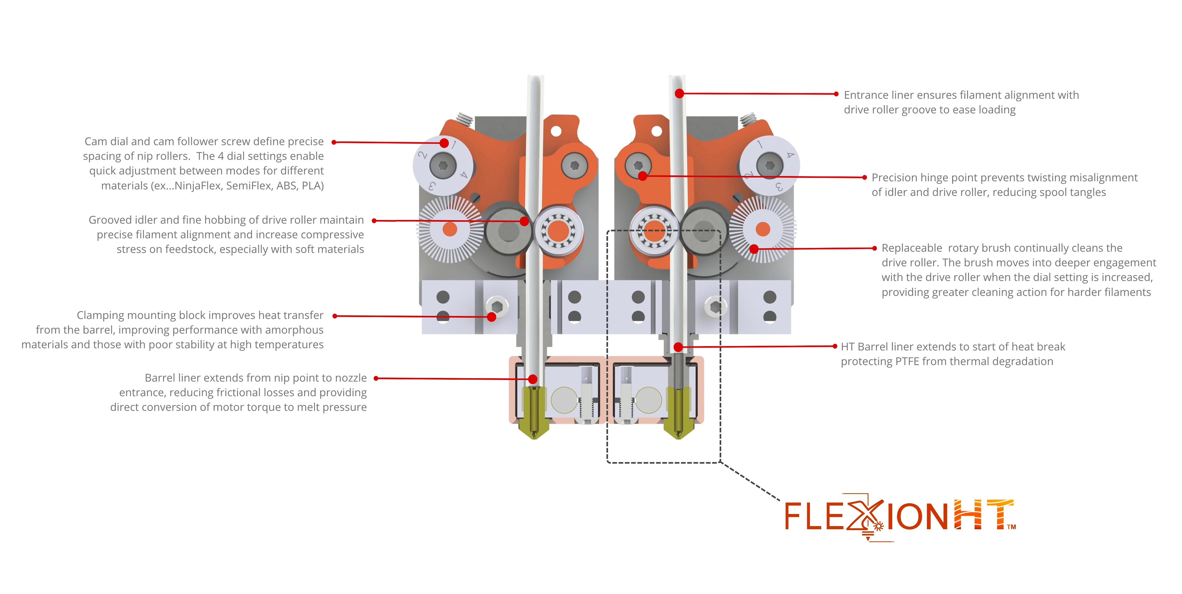 The Flexion Extruder is a drop-in upgrade on most common printers