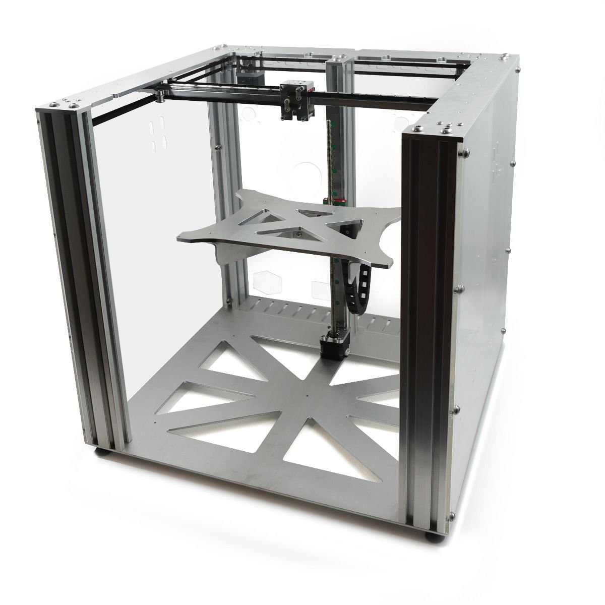 A Fabtotum inspired CoreXY Motion system provides a fast, precise, and sturdy platform. With no flying motors, no crossed belt paths, and an incredibly lightweight moving mass.