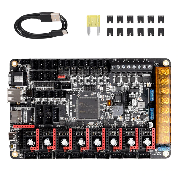 Hierdurch können Sie auch Anspruchsvollere Software wie z.b Marlin 2.0 und Klipper verwenden. Durch die 8 Steckplätze für Stepper Treiber, ist diese Platine besonders gut für anspruchsvolle Maschinen wie z.b. ToolChanger, Mehrfarbdrucker geeignet.