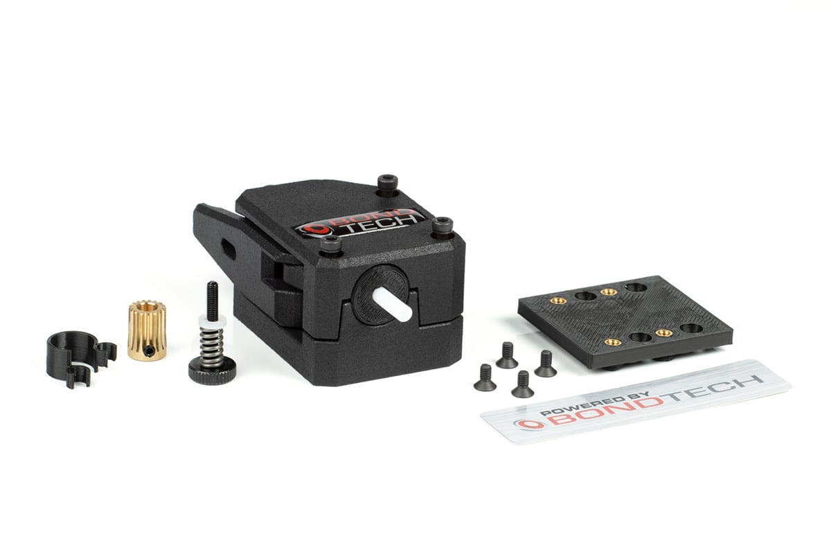 This kit provides a high-performance material feeding system with the ability to print faster with improved quality. The adjustable thumbscrew allows you to fine-tune the force acting on the filament. It allows for a more reliable printing with all sorts of filaments, both stiff and flexible and the DualDrive system ensures that the extruder never loses grip of the filament so grinding, slipping is a thing of the past.
