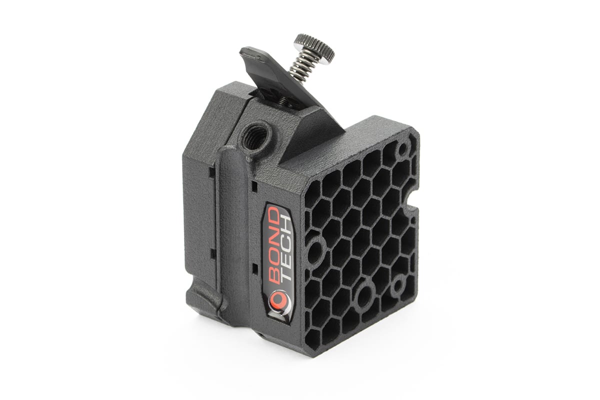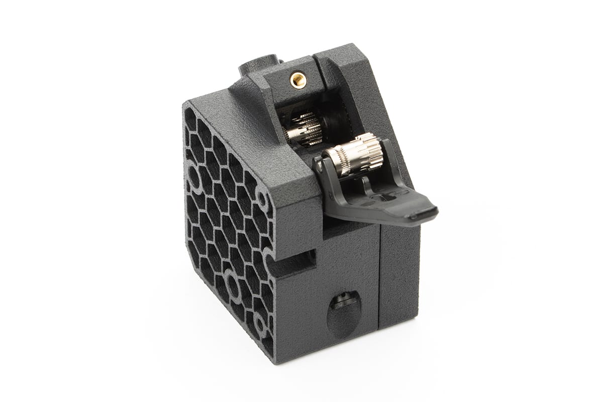 The thumbscrew tensioner allows the user to fine-tune the pressure exerted by the drive gears onto the filament. This gives you the power to adjust according to your preferences and to optimize for the type of material you are using.