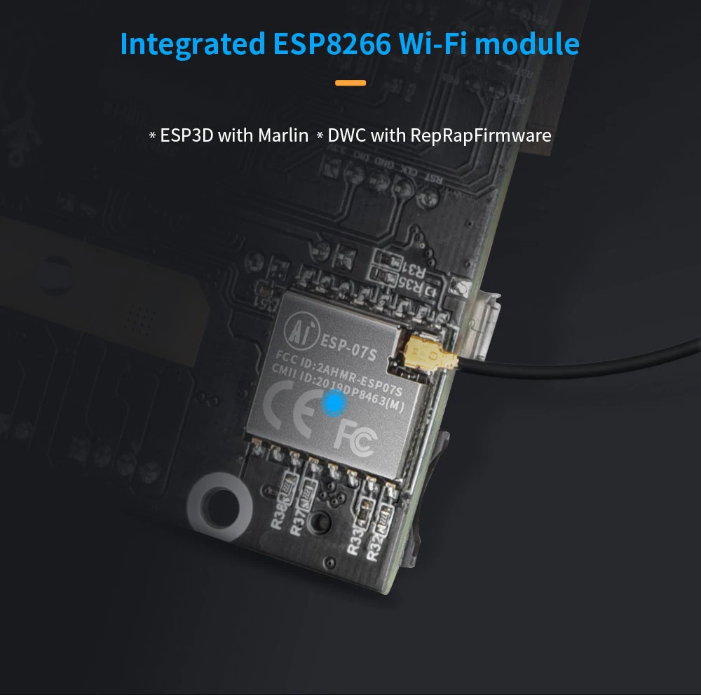 3. Integrated ESP8266 Wi-Fi module: ESP3D with Marlin & DWC with RepRapFirmware