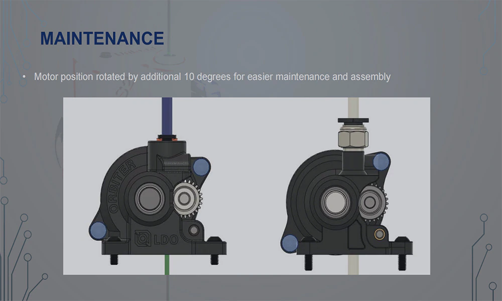 11. Mounting screws in line with filament exit path – improving housing stiffness and easier mounting