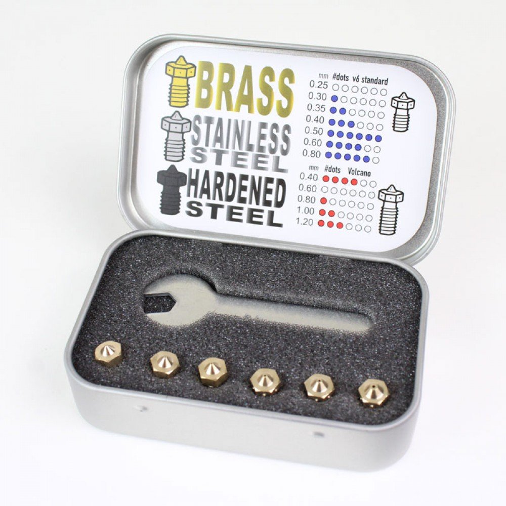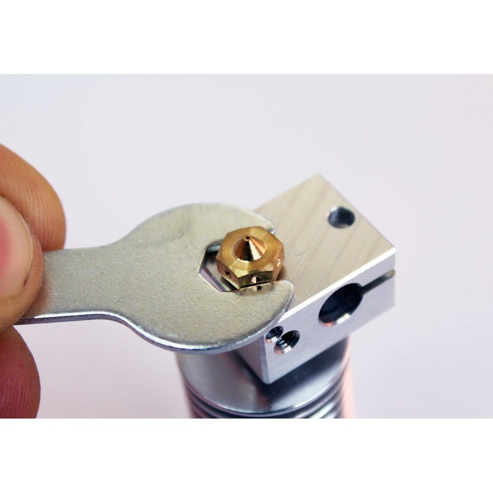 Suitable for all 3mm E3D Hotends except for Cyclops. We've included the full range of nozzles for those who want to explore the limits of high resolution printing with small nozzles, as well high speed high layer height printing with large nozzles. We've even included our purpose made E3D Nozzle spanner to make changing out the nozzles a breeze!